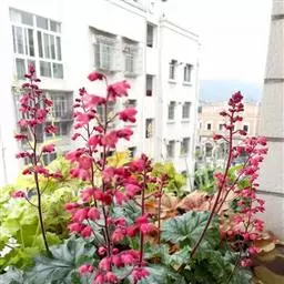 红花矾根(Heuchera sanguinea Engelm)虎耳草科矾根属植物,多年生耐寒草本,高度10-50cm,叶近圆形,缘具圆齿,阔心形,花小钟状,小花着生在总花便上形成圆锥花序,花期5-6月。