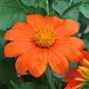 万寿菊是菊科万寿菊属一年生草本植物,别名孔雀菊、缎子花、臭菊花、西番菊、红黄草、小万寿菊、臭芙蓉、孔雀草。万寿菊茎近基部分枝。叶羽状分裂,长5-10厘米,宽4-8厘米,裂片长椭圆形或披针形,具锐齿,上部叶裂片齿端有长细芒,叶缘有少数腺体。头状花序单生,径5-8厘米,花序梗顶端棍棒状。总苞长1.8-2厘米,径1-1.5厘米,杯状,顶端具尖齿。舌状花黄或暗橙黄色,长2.9厘米,舌片倒卵形,长1.4厘米,基部成长爪,先端微弯缺。管状花花冠黄色,长约9毫米,冠檐5齿裂。瘦果线形,被微毛;冠毛有1-2长芒和2-3短而钝鳞片。花期7-9月。万寿菊中国各地均有栽培,在广东和云南南部、东南部已归化,国外原产墨西哥。万寿菊对土壤要求不严,但以肥沃疏松排水良好的土壤为好。耐移栽,种子发芽适温21-24℃,植株生长适合温度为20-29℃。喜温暖和阳光充足的环境,不