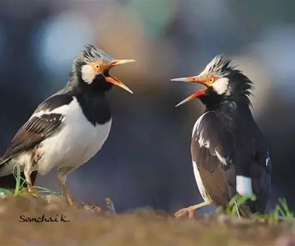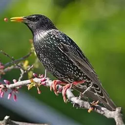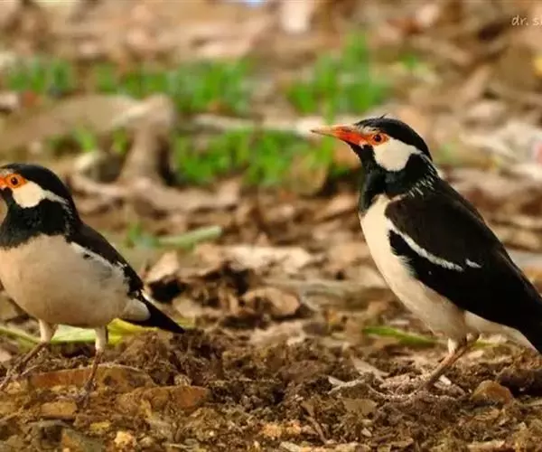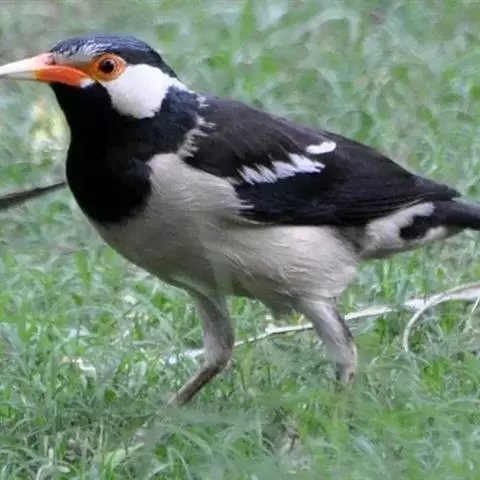 斑椋鸟(学名:Sturnus contra):是中等体型的黑白色椋鸟,体长24厘米。头顶、头侧、翼斑、腰及腹部白色,喉、胸及上体余部黑色,亚成鸟褐色。 虹膜灰色;眼周裸露皮肤橘黄;嘴黄色,嘴基红色;脚黄色。