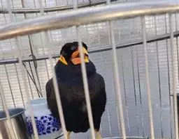黑冠椋鸟:中等体型的椋鸟,体长21厘米。雄鸟前头为黑色并具金属光泽;头顶、颈项和羽冠亦为黑色;翅及翅上覆羽黑色;尾羽褐色,具白色端斑;上体灰色;下体淡黄褐色。雌鸟形态与雄鸟相似,但羽冠较雄鸟为短。虹膜蓝白或乳黄色;嘴峰铅绿色;跗蹠及爪柠檬黄色。头具黑色羽冠,与其他椋鸟易于区别。主要栖息于开阔落叶阔叶林和灌木林中以及多营巢于树洞中或其他洞穴内。属群鸟共栖。常4-8只结小群活动。鸣声清脆响亮。食物有果实和浆果,偶食花蜜和小型昆虫。分布于印度、中国云南耿马。常见于印度城镇、村庄及铁路沿线。偶见于中国云南西南部和西藏东南部。