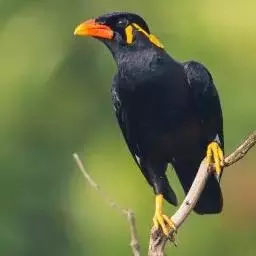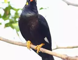 金冠树八哥为椋鸟科树八哥属的鸟类。体长约23厘米,闪辉黑色。特征为具翼斑及颏黄色,脸颊裸露皮肤粉黄色。…