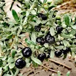 黑果枸杞(学名:Lycium ruthenicum Murr.)是茄科、枸杞属多棘刺灌木,高可达150厘米,多分枝;坚硬,有不规则的纵条纹,小枝顶端渐尖成棘刺状,节间短缩,有簇生叶或花、叶同时簇生,在幼枝上则单叶互生,肥厚肉质,顶端钝圆,基部渐狭,中脉不明显,花生于短枝上;花梗细瘦,花萼狭钟状,花冠漏斗状,浅紫色,裂片矩圆状卵形,耳片不明显;花柱与雄蕊近等长。浆果紫黑色,球状,种子肾形,褐色,5-10月开花结果。