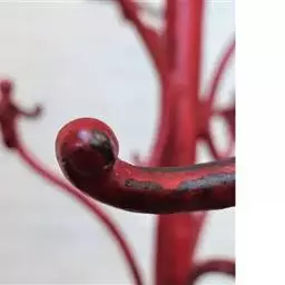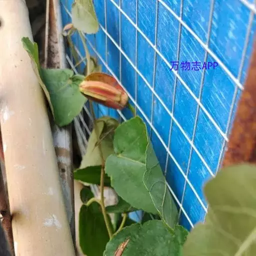 多年生常绿藤本,蔓长可达数米。叶互生,长卵形,先端渐尖,基部常绿蔓性藤本植物。叶心形或楔形,叶缘有不规则浅疏齿。花单生于叶腋,花瓣长披针形,红色,先端微急尖,稍外向下垂。副花冠3轮,最外轮较长,紫褐色并散布有斑点状白色;内两轮为白色,稍短。