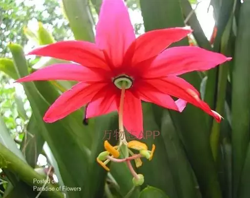 红花西番莲 是西番莲科、西番莲属多年生草质藤本,茎圆形,具卷须,长6-8米。叶互生,长圆形至长卵形,…