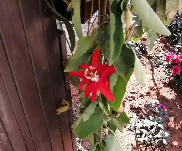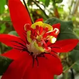 花大,极为艳丽,观赏性极佳。适合棚架、花架、绿廊栅栏及庭园种植观赏,盆栽可用于天台、阳台绿化。 红花西番莲的果实