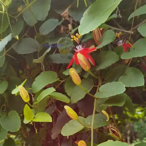 西番莲西番莲科西番莲属多年生常绿攀缘木质藤本植物。茎是圆柱形且有棱角,没有毛;叶子像纸一样薄,…