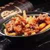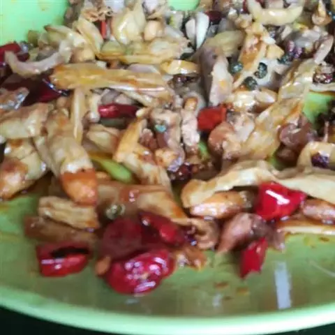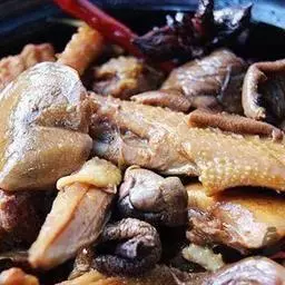 小鸡炖蘑菇是一道东北炖菜。通常是用干蘑菇、鸡肉和粉条一同炖制而成。榛蘑可以衬托出鸡肉的鲜香,粉条滑…