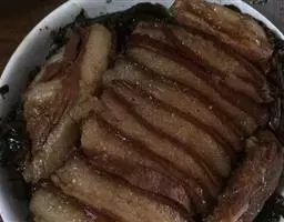 梅菜扣肉,汉族传统名菜,属客家菜 。制作材料有五花肉、梅菜、葱白、姜片等。