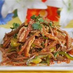 鱼香肉丝,是四川的一道特色名菜,该菜品以泡辣椒、泡姜、大蒜、黄葱、生姜和醋炒制猪里脊肉丝而成,…