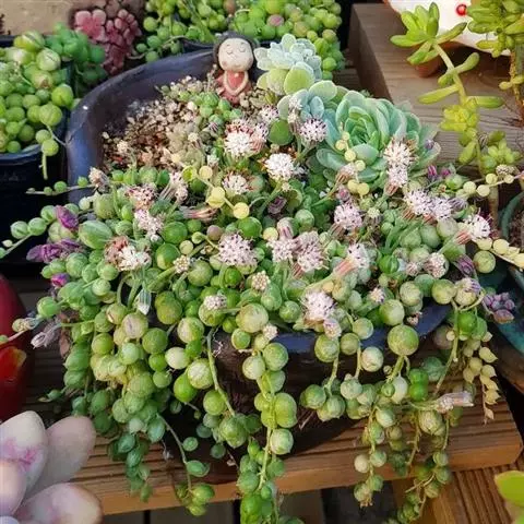 七宝树锦为菊科千里光属多年生肉质草本,是七宝树的锦斑品种,在春秋生长,夏季高温半休眠。