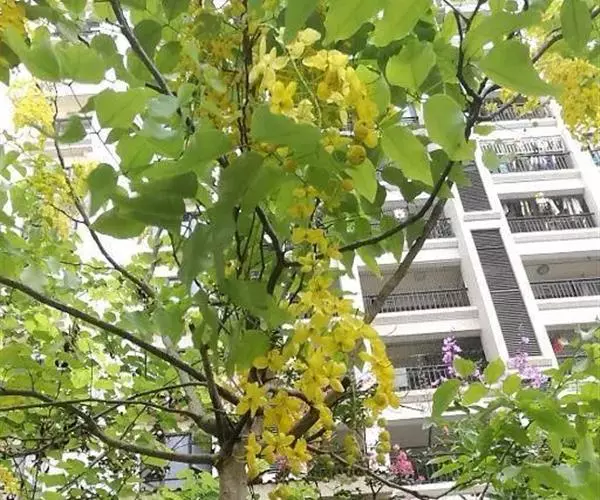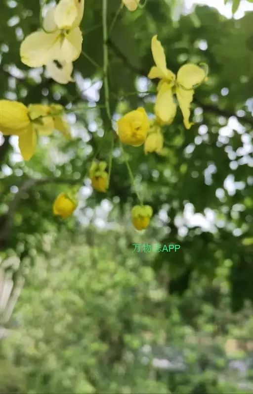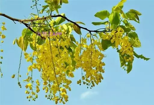 花期在5月,初夏满树金黄色花,花序随风摇曳、花瓣随风而如雨落,所以又名“黄金雨”。