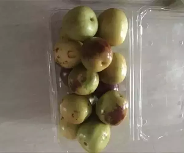 ②自10月上、中旬开始,分批采收冬枣,采收最好在清晨露水干后进行。