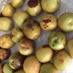 1.黑斑病。黑斑病在各冬枣产区均有发生,而且有加重的趋势。冬枣黑斑病在坐果前主要侵染叶片,以后从幼果开始就危害果实。感病果实病斑呈黑褐色,圆形,外围有不同颜色的晕圈或无果实皮层或部分果肉稍有凹陷或腐烂。根据最新研究表明,病源为菸草赤星病和一种细菌培养物。冬枣黑斑病在5月下旬开始侵染,6、7、8月是该病的高发期,此时正是高温多雨期,极有利于病源的蔓延。防治冬枣黑斑病可用世高1500倍液、克菌康600倍液、阿米西达1500倍液进行防治。 2.缩果病。近几年发病日趋严重。果实受害后,在果实的肩部和胴部出现淡黄色晕环病斑,以后逐渐成为凹陷状。果皮呈暗红色无光泽病斑,果肉病组织萎缩松软,呈海绵坏死,果皮干缩。枣缩果病一般在枣果红圈期到着色期、果肉含糖18%以上、旬平均气温在23℃~26℃时是盛发期,天气多雨多雾,更易流行成灾。 由于冬枣缩果病在前期主要由于真菌侵染,果实近成熟时主要由细菌侵染,所以,防治后期必须加入杀虫剂防治害虫(叶蝉、椿象、壁虱等),以防从伤口侵入。在7月份注意防治刺吸式害虫,可用绿亨6号1000倍液在8~10天内连喷两次,防效可达95%以上。在8、9月份用杀虫剂(如功夫等)加烯唑醇3000倍混合喷雾,防效达95%以上。也可喷甲基托布津800倍液加链霉素进行防治,效果也不错。冬枣硼营养失调,会加重缩果病的发生。可采用花期喷硼肥,再从幼果期开始用真菌杀菌剂加细菌杀菌剂加杀虫剂混合液进行防治,也可达到较好的防治效果。 3.烂果病。造成烂果病的病原菌主要以真菌和细菌为主,烂果症状分为“黑疔型”、“浆烂型”多种。在生长季节7~9月份为侵染高峰,高温高湿可造成烂果大发生。防治烂果病要从6月底7月初开始,可用70%甲基托布津800倍液、50%多菌灵600倍液、轮纹一号400~600倍液、立效威1500倍液与波尔多液、绿得保、猛杀生等药剂交替喷布,进行防治。 4.炭疽病。俗称烧茄子病、焦叶病。果实最初出现浅黄色红褐色水渍状斑点,逐渐扩大形成黄色晕环,最后果肉变褐或黑褐色,果核变黑。该病多数情况是在缩果,病果上二次寄生。5月中旬前后有降雨时即可传播,7月下旬至8月下旬开始发病,多雨年份发病重。可用70%甲基托布津800倍液、福星8000倍液、多氧霉素1000倍液加大生800倍液或仙生600倍液防治。 5.苦痘病。冬枣得病后果面会出现深绿色或淡红颜色的不规则斑块,果肉呈绵状坏死,病果得病部位稍凹陷。该病主要是由于钙营养失调引起的生理病害,在果实生长期可用0.2%硝酸钙、硼锌钙、美果四合一(郑州锦绣产)喷施。 6.裂果病。该病是生理病害,一般在果实生长后期发生,特别是9月上旬如果遇干旱加上突然降雨,冬枣极易造成裂果,严重影响产量和品质。防治裂果病一是喷施枣果防裂防烂剂,在枣果变红转色前,连喷2~3次。二是在果实生长中后期适当补充钙肥,并结合树下覆盖地膜、旱季及时灌水的方法,可基本防止冬枣裂果。 7.溃疡病。该病为细菌性侵染。冬枣得病后果面出现红褐色不规则的凹陷病斑,病组织呈现黄色黏稠状腐烂,深达果核。防治溃疡病可用77%可杀得可湿性粉剂600倍液、农用链霉素加乙蒜素混喷。 8.软腐病。病果果面出现不规则的软腐斑块,病部不凹陷,皮层下枣肉组织呈黏状腐烂,以后果肉组织干缩失水,成为网状空洞,最后仅剩皮层。该病在果实成熟前和储藏期发生。防治方法可参考溃疡病的防治。
