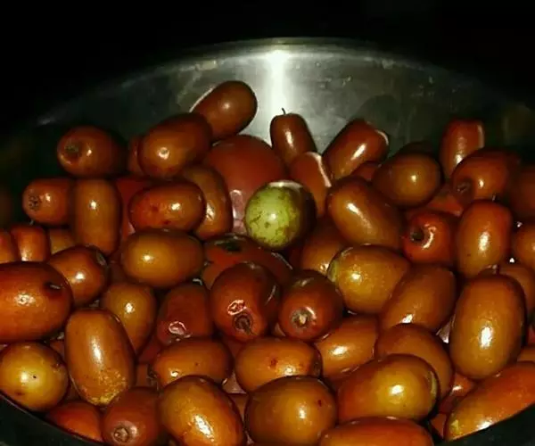 冬枣属鲜食品种,多采用手摘,同株冬枣成熟期不同,可根据情况分2-3次采收,分期采收不但可以提高产量,而且可以提高品质。