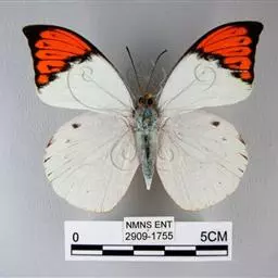 鹤顶粉蝶是鳞翅目粉蝶科鹤顶粉蝶属昆虫,又称端红蝶。雄蝶翅白色,前翅前缘及外缘黑色,…