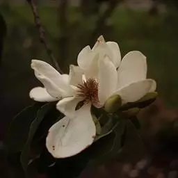 深山含笑是木兰科含笑属常绿大乔木。株高达20米;芽、幼枝、叶下面、苞片均被白粉;叶为革质宽椭圆形,…