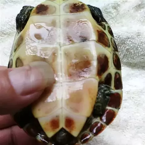本病多为龟表皮被碰伤后感染霉菌所致,表现为表皮坏死呈红白色,严重的可见霉斑。