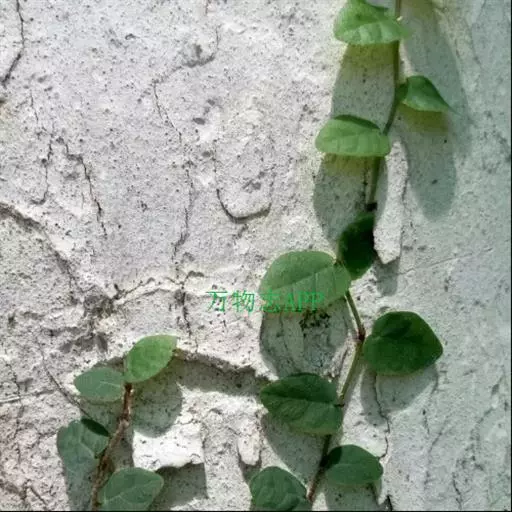 常绿木质藤蔓植物,茎有不明显皮孔。小枝、嫩叶柄及叶背面被短柔毛,老枝叶无毛。叶革质,椭圆形至卵状椭圆形或宽倒卵形,长 2-6cm,宽1-3cm。老叶近绿色或淡绿色,第一轮新叶粉红色,少数有2-3对粉红叶,第二至第三对为纯白色叶,在纯白叶与老绿叶间有数对斑状花叶,整株叶色丰富,可谓色彩斑斓。