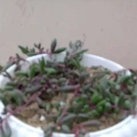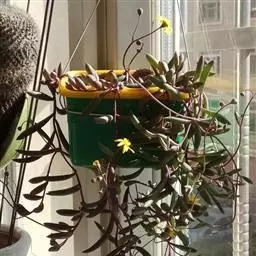 紫弦月,中文正式名黄花新月。多肉植物,菊科厚敦菊属,经常被认为千里光属。紫弦月又称紫玄月、紫佛珠、紫葡萄、玉翠楼等,它的原产地现在还没有官方明确记载。多肉植物的垂吊品种之一,叶片高度肉质化,纺锤形,日照充足时为扁球形。茎不太肉质,平卧地面或垂吊,上常生不定根。平常绿色,日照充分的情况下会从绿色变为紫红色,故得名。秋冬开黄色小花,头状花序,具舌状花,花序直径约1-2cm。搭配自身的紫红色非常漂亮,为种植较为广泛的菊科多肉植物之一。