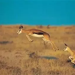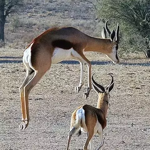 跳羚是哺乳纲、偶蹄目、牛科哺乳动物,属于中型的羚羊。四肢细长;背面毛色黄褐,…