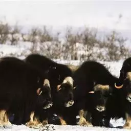 麝牛,是偶蹄目牛科麝牛属哺乳动物。麝牛体型大,但低矮粗壮,头大,吻部宽,眼小;雌雄均具角,四肢短粗,…