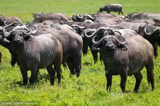 非洲野水牛:共有5个亚种。头体长2.1-3.4米,身高1-1.7米,体重300-900千克。胸膛宽…