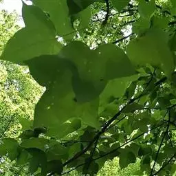 落叶乔木,高达30米,胸径最大可达1米,树皮灰褐色,方块状剥落;小枝干后灰色,被柔毛,略有皮孔;芽体卵形,长约1厘米,略被微毛,鳞状苞片敷有树脂,干后棕黑色,有光泽。叶薄革质,阔卵形,掌状3裂,中央裂片较长,先端尾状渐尖;两侧裂片平展;基部心形;上面绿色,干后灰绿色,不发亮;下面有短柔毛,或变秃净仅在脉腋间有毛;掌状脉3-5条,在上下两面均显著,网脉明显可见;边缘有锯齿,齿尖有腺状突;叶柄长达11厘米,常有短柔毛;托叶线形,游离,或略与叶柄连生,长1-1.4厘米,红褐色,被毛,早落。