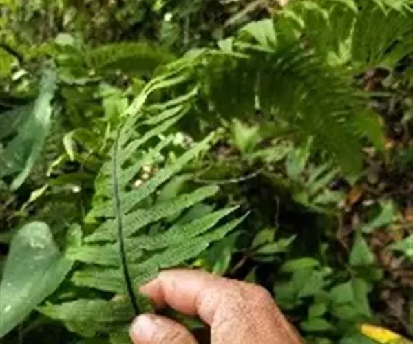 植物学家还在友水龙骨的叶片上发现了一种奇特的夜蛾幼虫,能根据孢子囊群的形态和叶片颜色的变化,动态改变自身的斑点。当友水龙骨叶背呈绿色,圆形孢子囊群呈红褐色时草绿色的幼虫背面呈现着红褐色的圆点;当幼虫取食叶片后,叶片变为深褐色,这时绿色幼虫体表的斑点连成一片,颇似枯萎的叶片,十分有趣。