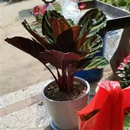 红背卧花竹芋枝叶挺拔,叶面绿色,背面红色,十分耐看,是较好的室内观叶植物。盆栽宜点缀宾馆厅堂、车站…