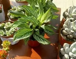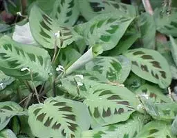 花叶竹芋:竹芋科,竹芋属匍匐状分枝草本植物,植株矮小,高可达40厘米,叶片长圆形、椭圆形至卵形,基…