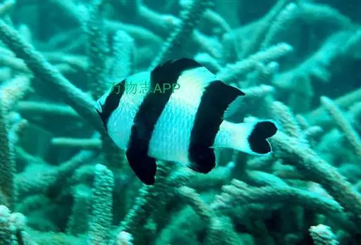 此种鱼数量极少。 体形特征 可达8(厘米)。白色鱼体上有4条黑色横带。 食 性 杂食性,食藻类和浮游生物。