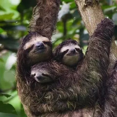 食蚁兽:哺乳动物,主要栖于中美和南美,南至阿根廷热带森林中。这一类群在捕食蚂蚁和白蚁方面已有高度特化。食蚁兽结构上的特征,是与其捕食昆虫的一系列活动相联系的。头骨长而大致呈圆筒状,颧骨完全,长 小食蚁兽 的鼻吻部有复杂的鼻甲。齿骨细长,无齿。蠕虫状的长舌能灵活伸缩,舌富有由唾液腺分泌的唾液和腮腺分泌物的混合粘液,用于粘取众多的蚁类。这些发达的腺体位于颈部。前肢有力,第三趾粗大,长着强而弯曲的爪,其余各趾缩小。地栖的大食蚁兽用指关节及弯曲的趾行走,而小食蚁兽,即二趾食蚁兽和环颈食蚁兽完全或部分过着树栖生活,步行时,前肢靠带弯爪的内向趾背着地。食蚁兽体型大小相差悬殊,小食蚁兽大似松鼠,不过350克,而大食蚁兽重达25公斤。大食蚁兽全身有长而粗的毛,毛色棕褐色,尾部肥大多下垂的长毛,而其他树栖种类身上和尾部的毛均较短,且尾有抓挠能力。