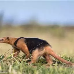 小食蚁兽见于墨西哥、特立尼达、巴西和秘鲁,体形最小,大似松鼠,不过350克,毛较短的,耳朵比较大。前肢的中间3趾有锐爪,第三趾特长,第一趾有小爪,第五趾无爪。后肢也有五趾。但是更为有趣的还是它的尾巴。这条尾巴不仅能缠绕,而且能起支柱作用。每当遇到危险时,它便以尾巴支持后部,半身挺起,宛如一副三角架。一边用前肢来威吓入侵者,一面由嘴里发出一种特殊的哨声,以此达到保卫自己的目的。小食蚁兽是一种既能树栖、又能地栖的动物。白天黑夜都可出来活动。