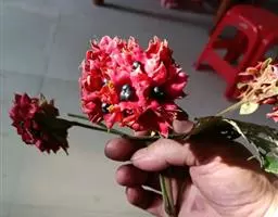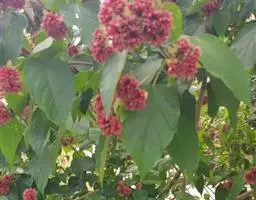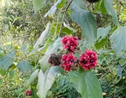 米团花是大灌木至小乔木,高1.5—7米,叶片多破碎,皱缩,黄绿色至黄褐色,完整叶片展平后呈椭圆状披针形,长10-22cm,幼叶两面被绒毛;叶柄长1.5-3cm。