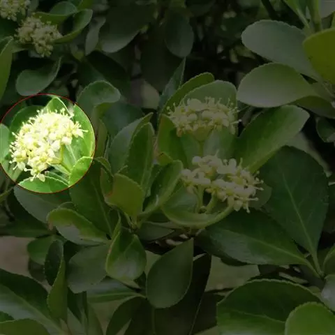 常绿灌木或小乔木,高达8米。 叶光亮革质,倒卵形或窄长椭圆形,长3-6厘米,宽2-3厘米。 聚伞花…