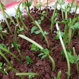 春栽在3月中下旬采用塑料薄膜育苗, 要求地温稳定在10℃以上。夏季育苗在4月下旬至5月上旬进行。播种前最好用温水浸种催芽, 待露出白色芽尖时点播, 穴播3粒。苗床应选在背风向阳处, 床宽1米为宜, 床面铺20厘米厚的细土。灌足水, 待水渗入土层即可播种, 播后盖一层细沙土, 以不露种芽为宜。搭25厘米高的拱棚, 盖膜封严。待幼苗长到3片真叶时, 根据天气情况揭膜、通风、炼苗, 但要防止强光照射烧苗。及时间苗, 苗距4厘米见方为宜。另外, 苗期要用抗枯宁、百菌清或硫酸铜, 加入0.5%的磷酸二氢钾, 均匀喷雾2~3次, 可增强植株抗早期落叶病的能力。