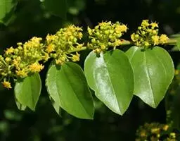 花绿黄色,两性,5基数,数个或10余个密集成近无总花梗或具短总花梗的腋生二歧聚伞花序,花梗长2-4毫米,被灰黄色绒毛;萼片卵状三角形,顶端尖,外面被毛;花瓣矩圆状匙形,基部具爪;雄蕊与花瓣近等长,花盘厚,肉质,10裂,中央凹陷,子房球形,无毛,2室,每室有1胚珠,花柱2浅裂或半裂。核果矩圆形或球形,长1-1.2厘米,直径约1厘米,橙色或红色,成熟时变黑色,基部有宿存的萼筒;果梗长5-8毫米,被短柔毛,2室,具1或2种子;中果皮薄,木栓质,内果皮厚,硬革质;种子宽而扁,长6-7毫米,宽5-6毫米,红褐色,有光泽。花期8-11月,果期9-12月。