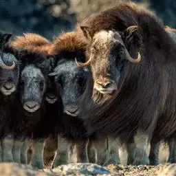 麝牛,是偶蹄目牛科麝牛属哺乳动物。麝牛体型大,但低矮粗壮,头大,吻部宽,眼小;雌雄均具角,四肢短粗,…