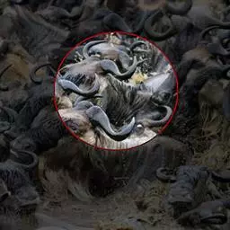 非洲野水牛:共有5个亚种。头体长2.1-3.4米,身高1-1.7米,体重300-900千克。胸膛宽…