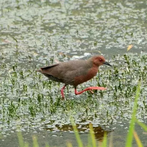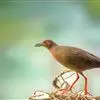 红脚苦恶鸟(学名:Amaurornis akool)是鹤科秧鸡属的中等体型的鸟类,共有2个亚种。体长约28厘米,体形大小似秧鸡。嘴短,其长度约为跗蹠的2/3,嘴形多样。嘴基稍隆起,但不形成额甲。翅较圆,第1枚初级飞羽较短,第3枚初级飞羽最长,第2枚与第5枚或第6枚等长。跗蹠细长,其长度短于中趾连爪。色暗而腿红。上体全橄榄褐色,脸及胸青灰色,腹部及尾下褐色。幼鸟灰色较少。体羽无横斑。飞行无力,腿下悬。