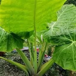 海芋 K. Koch),是天南星科海芋属的大型常绿草本植物;具匍匐根茎,有直立地上茎,…