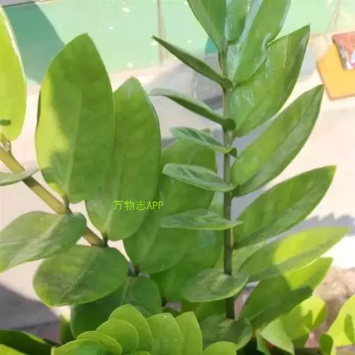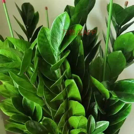 雪铁芋植株的每一枚偶数羽状复叶都呈叶轴基部硕壮的状态,仿佛是挺起的佛肚。叶轴的中上部则呈圆柱形,上有不规则的暗褐色斑纹,宛若外被一层迷彩衣。其复叶上的椭圆形或卵圆形小叶,质地厚实,叶色浓绿,在阳光下仿佛涂上一层闪闪发光的釉彩。如果将数株合栽于一个精致的青花瓷盆中,则有一种蓬勃向上的生机、葱翠欲滴的活力,观赏价值高。