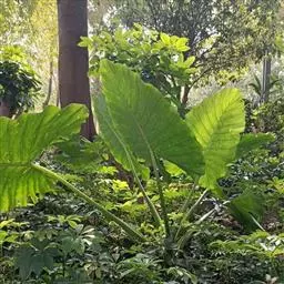 雪铁芋 地上部分无主茎,株高50至80厘米,地下有肥大的块状茎,直径5至8厘米。