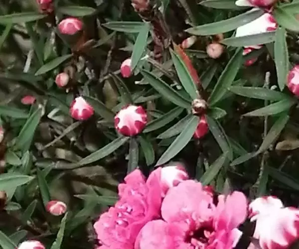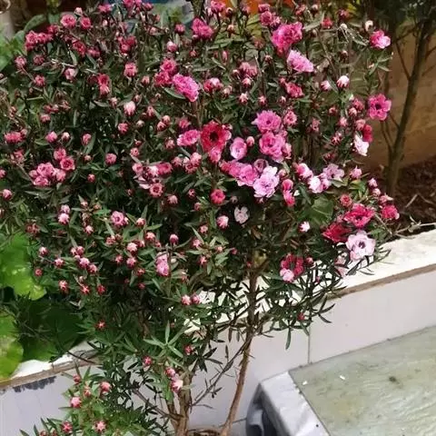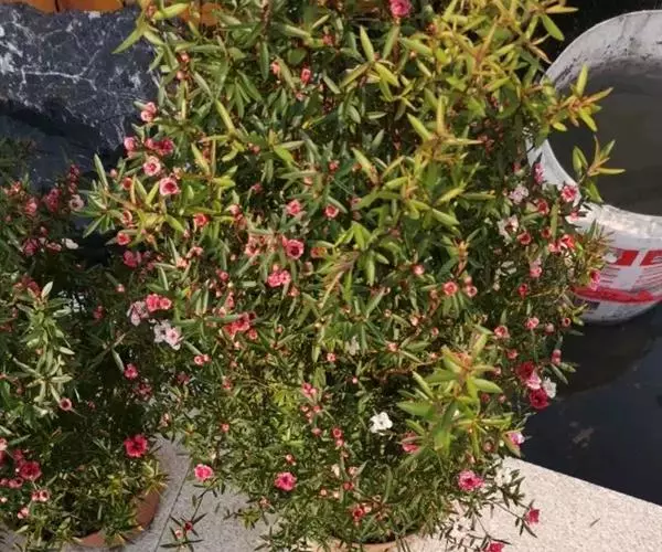 松红梅,拉丁学名(Leptospermum scoparium),常绿小灌木,桃金娘科,是近年来引进的园林花卉品种。