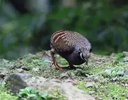 体大的灰褐色鹑类。胸灰色具黑色细纹。与相似种类四川雉鹑不同处在于栗色喉块外缘近白。有猩红色眼周裸皮。…