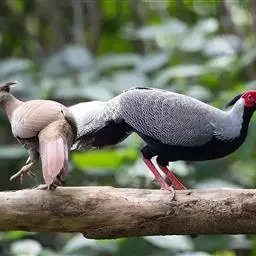 黑长尾雉大型鸡类,体长53~88厘米。雄较雌大。雄鸟通体紫蓝色,脸鲜红色,翅上有一条显著的白色翅斑…
