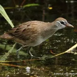 白眉田鸡是鹤形目秧鸡科的鸟类,小型涉禽,体长约20厘米。是一种灰褐色秧鸡。嘴短,头部斑纹明显,…