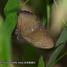 大型蝶种,展翅约为7-8cm。翅表底色为黑色,表面布满不规则的米黄色斑纹。下翅前缘有一眼状斑,肛角处有一块红褐色斑纹。 观察: 一只蝴蝶从卵→幼虫→蛹→成虫的蜕变过程。 幼虫体长约 0.3 公分,外表长满了小细毛,在它身边还有残馀的淡黄色卵壳,不过大部分的卵壳已经被它吃掉,作为营养补给品了。大多数的时间都在叶子上休息。在一次一次的蜕皮之後,体型越来越大,身上的短毛也变少了,外表看起来很像鸟粪,这是为了避免被天敌-小鸟捕食的求生策略。换上绿色的外衣以後,就进入了幼虫的最後一个阶段『终龄幼虫』。绿色的身躯上点缀著白色条纹和黑色的斑点,头部很小是褐色的,胸部和腹部是绿色的,胸部长了三对脚,腹部则有五对脚。休息时停在茎上,藉著绿色的保护色,让天敌不容易发现,如果受到攻击时,它会伸出一对红色的『臭角』,并散发出特殊的味道,甚至抬起头来露出狰狞的面目,来吓退敌人呢! 约四天以後绿色的幼虫停止进食,并且到处爬行找到合适的枝条吐丝固定,弓起身体成为『前蛹』,一天以後,最後一次蜕皮变成『蛹』。蛹期约有十天,在这个阶段,虽然蛹的外表看起来没什麼改变,但是仔细观察会发现:蛹会由绿色渐渐变 成黄绿色,表面也会有突起的纹路,看起来像是翅膀,可见蛹里的小生命正在慢慢的成长蜕变为蝴蝶呢!快要羽化时,蛹的颜色也变成半透明的,从外面就可以看到黑色带著白色斑点的翅膀呢!甚至有一只蚂蚁不小心爬到蛹上,蛹还动了几下,似乎要赶走这个误闯禁区的不速之客。蛹抖动了几下,不到一分钟美丽的蝴蝶便钻出蛹壳,做完『日光浴』以後它便展翅高飞,迎向生命的新旅程了。