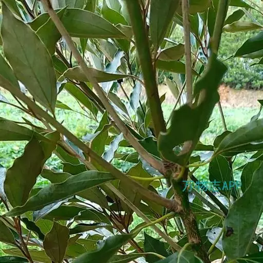 叶互生,椭圆形至披针状椭圆形,长6.6-20厘米,宽3-4.5厘米,两端渐狭,而先端钝,革质,幼叶两面密被金黄色绢毛,老叶上面毛脱落呈绿色而有光泽,下面粉绿,有贴伏黄褐或橙褐色绢毛,离基三出脉,侧脉每边4-5条,第一对侧脉离叶基部6-10毫米处发出,斜展,靠叶缘一侧有4-6条小支脉,先端弧曲联结,其余侧脉自中脉中部或中上部发出,中脉和侧脉在叶两面均突起,横脉两面明显;叶柄长2-3厘米,颇粗壮,初时密被金黄色丝状柔毛,后毛渐脱落变无毛。