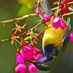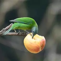 金额叶鹎是和平鸟科、叶鹎属的鸟类。体长16-20厘米。额和头顶前部金桔色,整个上体包括两翅表面草绿色。…